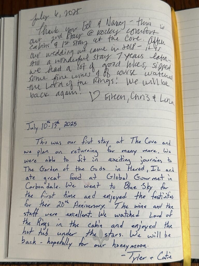 EXCELLENT Based on 80 reviews Posted on Tyler TresterTrustindex verifies that the original source of the review is Google. Absolutely excellentPosted on Chad PhillipsTrustindex verifies that the original source of the review is Google. Nancy and Edโs place is one of the most peaceful, relaxing stays weโve ever had. The place is perfect and we walked to Blue Sky each evening to watch the sunset.Posted on Alexis PohlTrustindex verifies that the original source of the review is Google. My husband and I have celebrated 2 anniversaries here. It is in a fantastic secluded area where you can get away from the hustle and bustle of life. The houses are fully equipped with everything you could need including the kitchen. There are hot tubs which are so relaxing! The fireplaces make the houses so cozy. Close to wineries! The ultimate The Hobbit and The Lord Of the Rings themed getaway! Don't pass this opportunity up!Posted on Susan EdwardsTrustindex verifies that the original source of the review is Google. We had an amazing time at the Rocky Comfort Cabins! Celebrating our 29th wedding anniversary. The place was magical and we had a grand time. Highly recommend!! xoPosted on Gerald WallaceTrustindex verifies that the original source of the review is Google. This was our third stay at Rocky Comfort. Our second in the Creole. The cabin is cozy and the property is beautiful. It is the perfect place to get away from the hustle and bustle of everyday life. It is quiet and peaceful. Nobody bothers you and the owners (Ed and Nancy) are wonderful people who truly seem to care about their guests. The furniture is beautiful and really fits with the "theme" of the cabin. The bed was excellent and we slept great. Overall Rocky Comfort is an awesome place to visit. We will definitely be back!Posted on Jed LovejoyTrustindex verifies that the original source of the review is Google. An absolutely great place to stay!! Hosts are lovely to work with and the surroundings are beautiful any season. The house itself has just the right amount of theming and served as a great space to spend time together.Posted on Jazmine SalasTrustindex verifies that the original source of the review is Google. I am a city girl through and through. So when I stumbled upon Rocky Comfort Cabins, I was intrigued by the remote location and beautiful views. My husband and I spent a few nights here and we enjoyed our time. There is no Wi-Fi or Cell Service, so if you're looking to unplug against a backdrop of rolling hills and beautiful forests, this is the perfect space. We stayed in the Creole Cabin which had a large hot tub, one bedroom, two bathrooms, and a large kitchen. The Cabin was within walking distance to the Blue Sky Vineyard, which I strongly recommend (the white sangria is delicious!) Overall, the Creole Cabin was the perfect spot to unwind after a long day hiking in Shawnee or enjoying wine. We will be back!